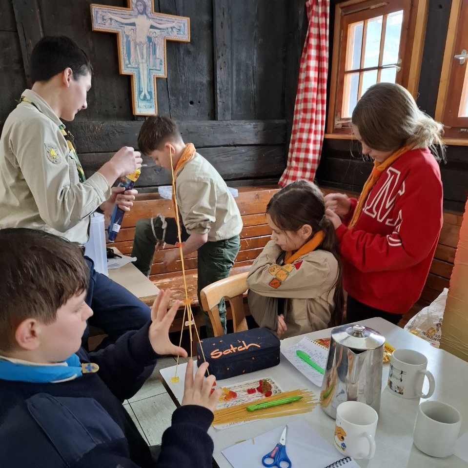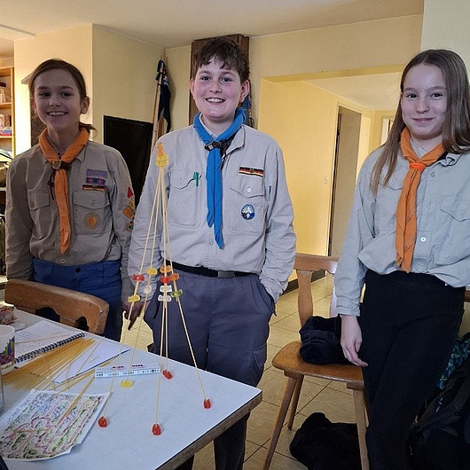 So mussten für jeweils fünf Spaghetti je zwei richtige Knoten gezeigt werden. Wer einen Knoten nicht mehr richtig wusste, holte sich einfach in seiner Mannschaft Hilfe und ließ sich den Knoten nochmal zeigen.
