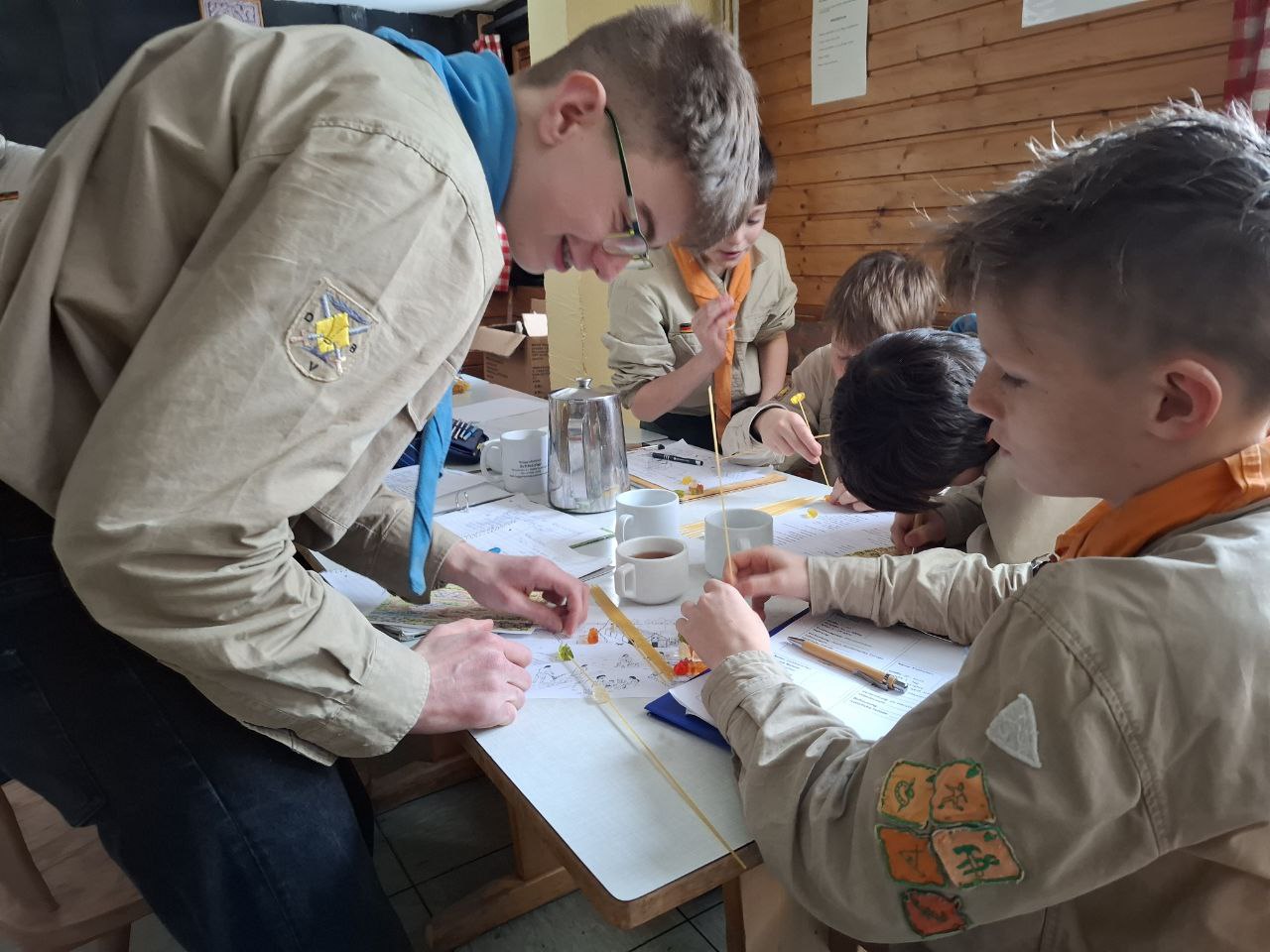 In kleinen Mannschaften galt es sich Spaghetti und Gummibärchen erst einmal zu "erwerben". Dazu mussten die zugehörigen Aufgaben gelöst werden.