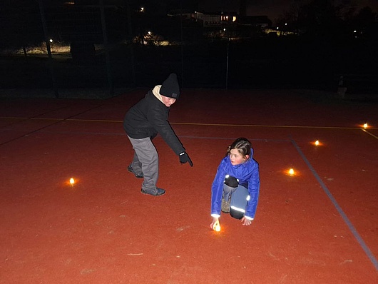 Aufgabe war das Sternbild des Großen Wagens möglichst ordentlich auf dem Sportplatz mit Kerzen nachzustellen. Außerdem sollten auch der Abstand und die Ausrichtung zum Polarstern möglichst genau abgebildet werden.